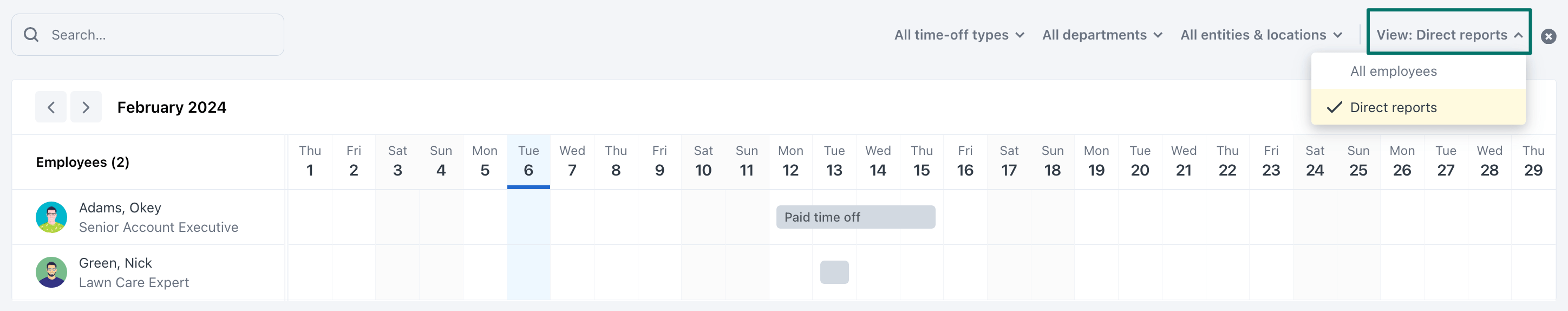 Employee Time Off Calendar